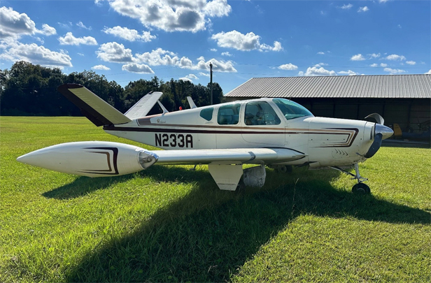 The V-tail airframe has been the recipient of upgrades too numerous to mention, some from the factory, others from the aftermarket by S.T.C., designed to make the airplane faster, fly farther, be quieter and more comfortable, and be safer… Number one on most speed freak lists is the IO-520BB engine installation! The engine installed was rebuilt by Ultimate Engines of Mena, Arkansas, in 2000 with new cylinders, GAMI fuel injectors, and flow-balanced cylinders. Time since major overhaul now is 1,536. Unfortunately, this aircraft suffered damage when the pilot broke ground and folded the gear, then settled back onto the grass runway and landed gear up. Unlike a gear up on asphalt, the belly is not scraped up, but several belly skins are dented and wrinkled. Sold with logbooks for the airframe since day one in 1959 to the present, plus a large amount of supporting paperwork, including S.T.C.s, POH, and flight manual, and the engine logs since the very detailed overhaul, and the prop log.