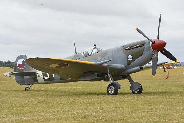 Supermarine Spitfire LF Mk. IXe. The identities of this particular aircraft have included: SL633 (British Royal Air Force), DU-K and JT-10 (Free Czechoslovak Air Force), 20-42 (Israeli Air Force), and UB-425 (Myanmar Air Force which was originally formed as the “Burmese Air Force”). It was one of the last Spitfires produced via the Vickers Supermarine plant at Castle Bromwich, England… During July of 2023, SL633 suffered minor damage during a landing, roll-out accident in Washington State, USA. The Spitfire was subsequently sold and exported to Australia, where an IRAN and return to Airworthiness was carried-out by its current owner. SL633 was then placed on the Australian CASA Register as VH-RAF and remains airworthy.