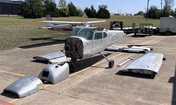 1959 Cessna 182B fuselage, wings, wing struts, cowlings, control surfaces, horizontal stabilizer, and vertical stabilizer. The project will be sold AS IS, with logbooks. The project is located at T31 Aero Country in McKinney, TX. Shipping is not available, but it will fit on the back of your 30-foot trailer (at least, it did for me).