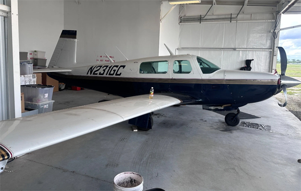 A 1979 Mooney M20K 231 has been spotted for sale. According to the listing, the aircraft has 2,762 total hours and 406 since major overhaul on its upgraded Continental TSIO-360-LB turbocharged engine (200 HP, 1,800-hour TBO). It features the desirable Monroy long-range fuel system (102 gallons total capacity), enabling up to 1,000 NM nonstop flights. Recently involved in a minor gear-up landing, the aircraft sustained light belly skin wear and a curled 3-blade McCauley prop. The plane has complete logs, and the annual just expired in March 2026. It wears a “Bravo” paint scheme with gray leather interior showing normal wear. Some avionics, including Garmin units, were removed, but several instruments (digital tach, EDM 700, WX-1000 Stormscope, KI-209, etc.) remain.