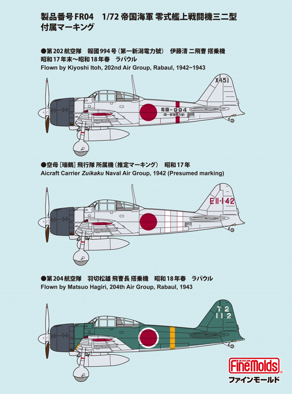 FineMolds has announced the upcoming release of two new Mitsubishi Zero kits in 1/72 scale. The offerings include the Mitsubishi A6M Zero prototype (FR03) and Mitsubishi A6M2 Zero Model 32 (FR04).