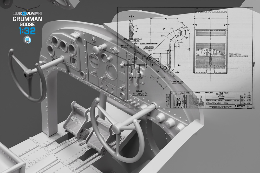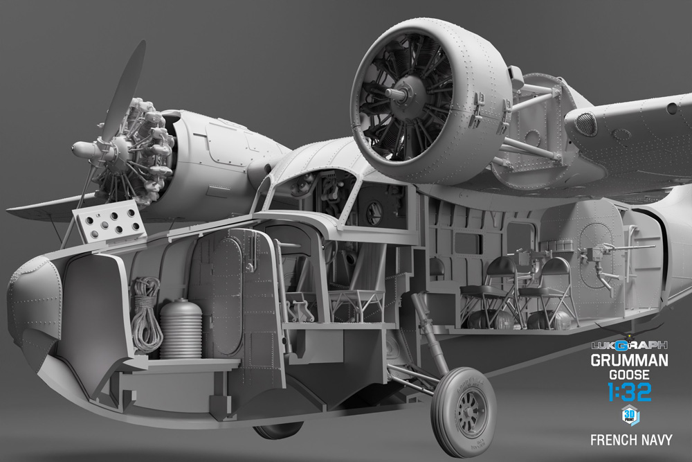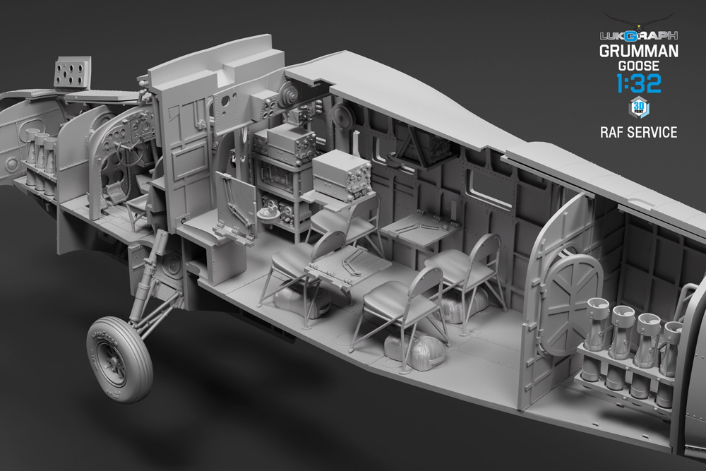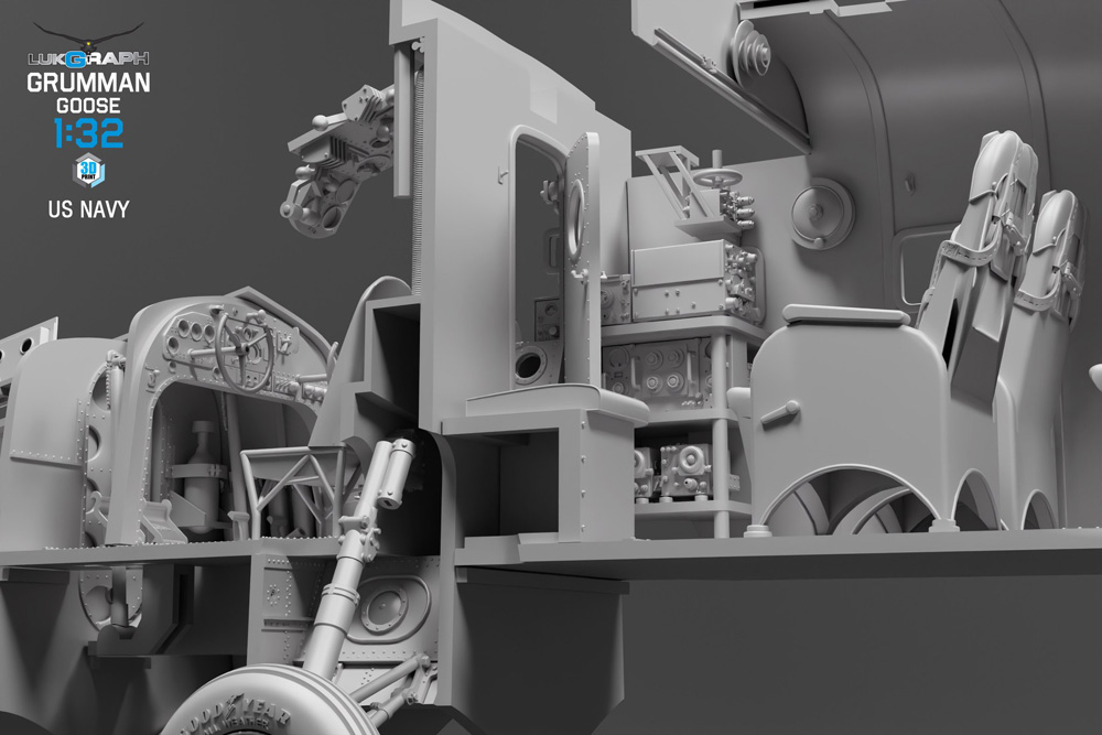 LukGraph has released a new series of renderings for their upcoming Grumman Goose model kit in 1/32 scale. These images focus on the interior, the 3D design for which was just completed. The company states that “there’s something to discover in every corner of the bow compartment, cockpit, cabin, and rear compartment. If you choose to leave doors and hatches open, viewers can explore the “hidden gems” gradually—peering inside through these little keyholes and spotting detail piece by piece.”